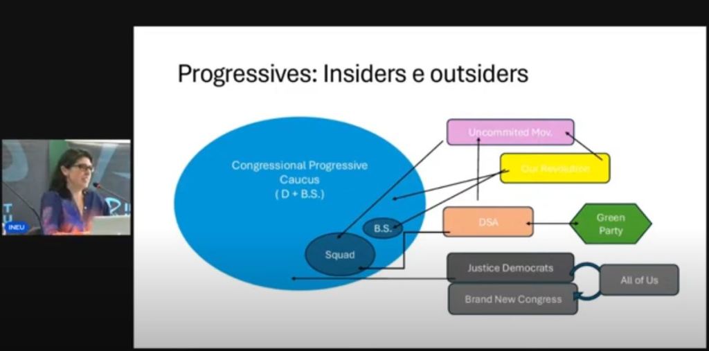 Já as forças do establishment “pró-mercado” do Partido Democrata contam com 112 congressistas: 100 da New Democrat Coalition, e 12, da Blue Dog Coalition. A pesquisadora, que em 2020 antecipava a derrota democrata, acredita ser pouco provável uma guinada progressista entre os Democratas.