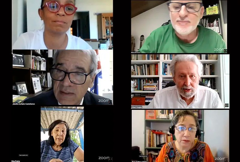 No debate: Marajuara Azambuja e Mauri Cruz, Adolfo Castellanos e Oded Grajew, Rita Freire e Rosy Zuñiga.
